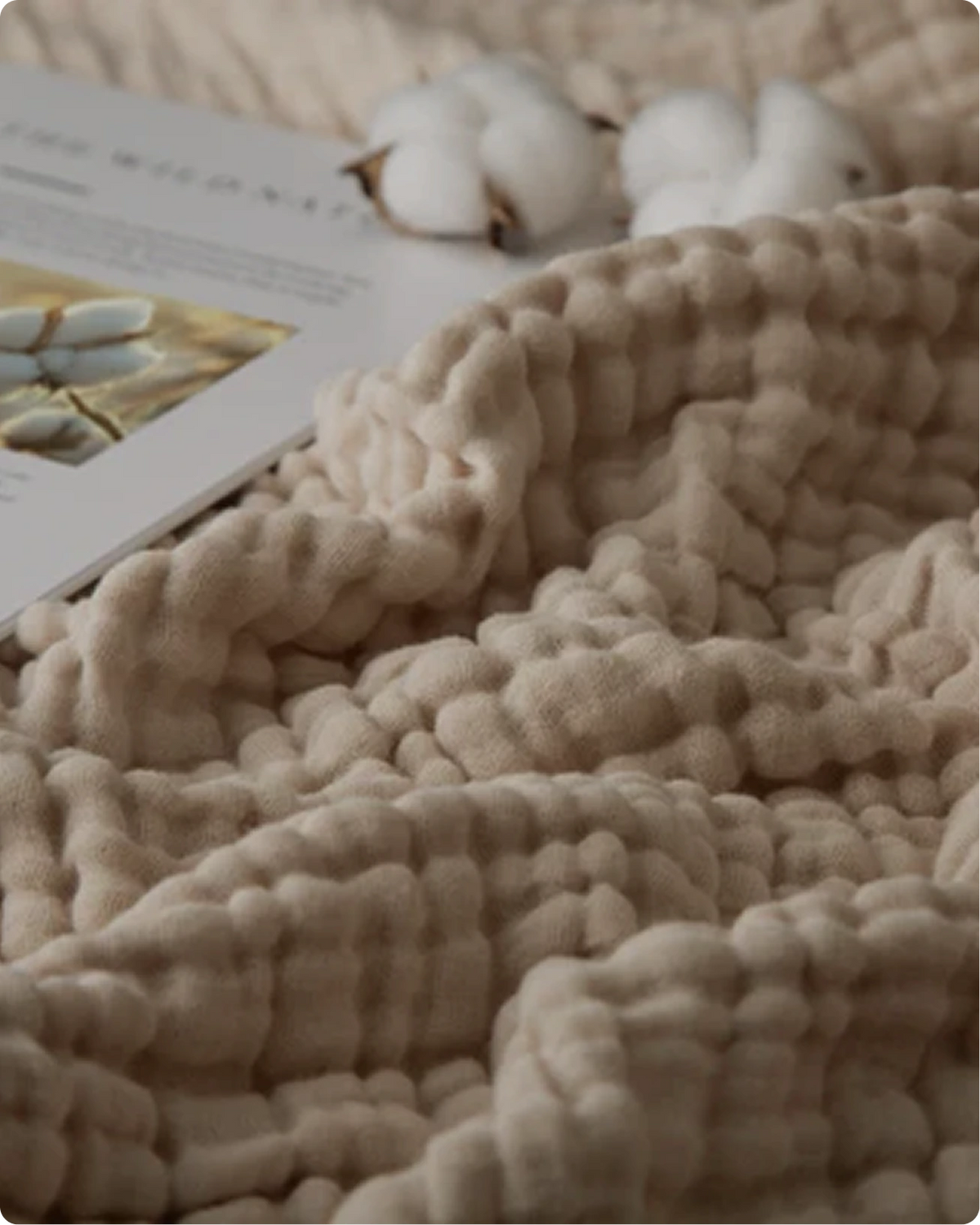 “This muslin blanket feels incredibly soft and breathable. I sleep comfortably without overheating, and it looks beautiful on my bed every single night.”