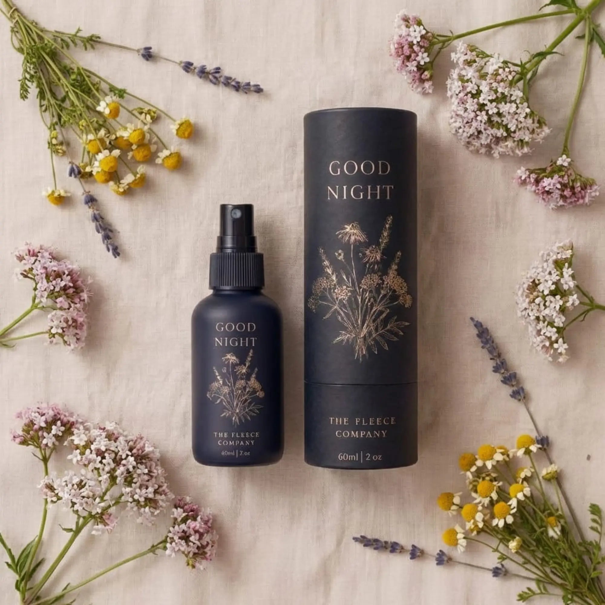 Sleep deeper, naturally. Our Good Night Spray Formula made from pure lavender, chamomile, and valerian root , three botanicals clinically proven to reduce anxiety and improve sleep quality across 65+ studies and nearly 8,000 patients. Just one spray activates similar calming brain receptors as prescription sedatives, without the side effects.