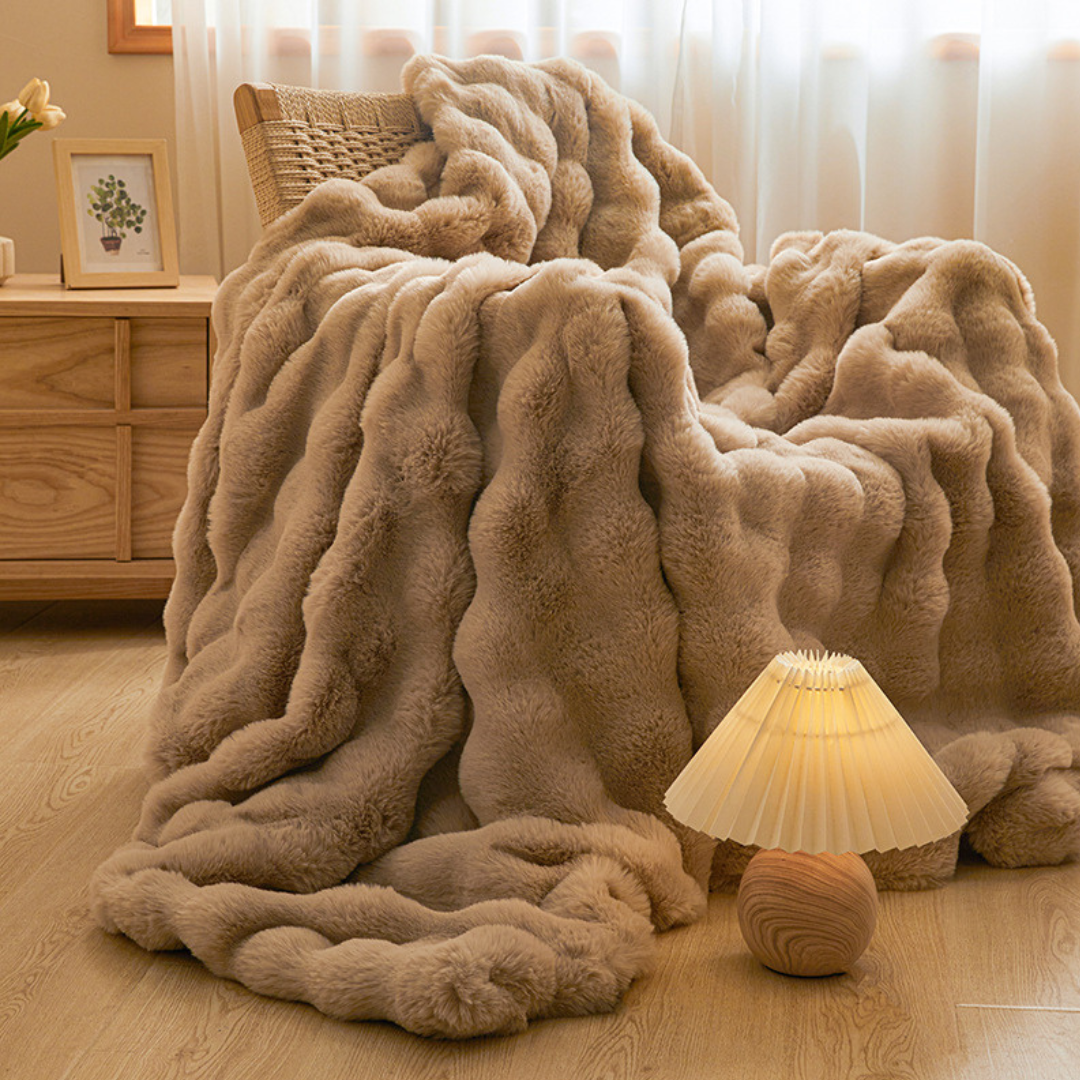 The Fleece Bubble Blanket delivers instant warmth and softness with its premium faux fur. Its plush, cloud-like texture keeps gentle heat while staying light and airy. Perfect for cozy comfort and effortless style year-round.