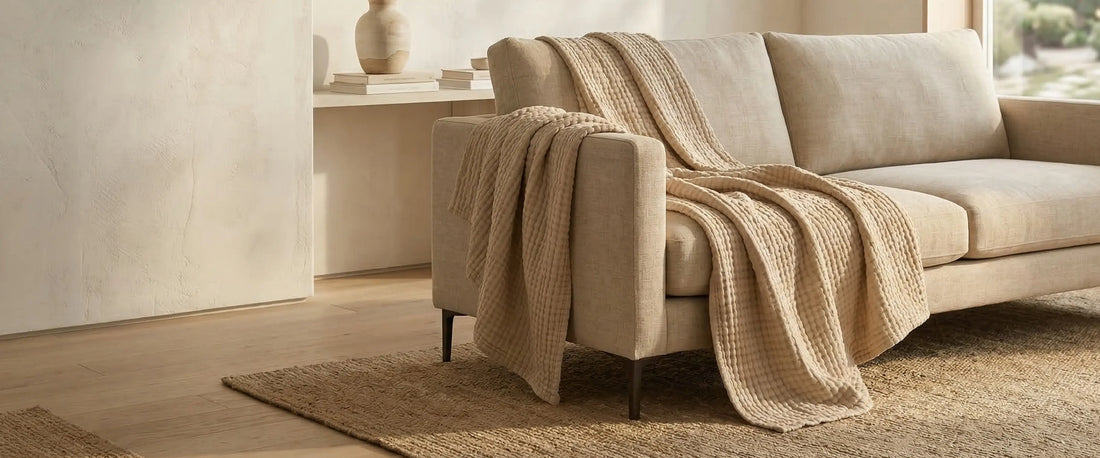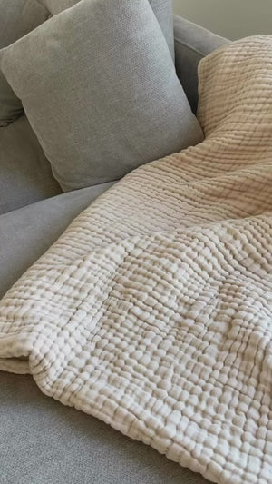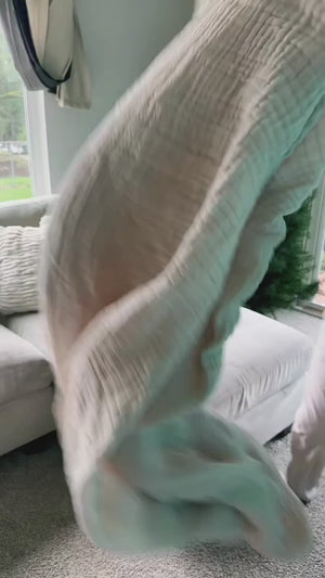 Muslin cotton blankets are made from 100% natural fibers, making them breathable, hypoallergenic and gentle on sensitive skin, including babies. Unlike synthetic blankets, muslin gets softer with every wash, meaning it only gets better over time. It regulates temperature naturally, keeping you cool in summer and warm in winter, making it a truly all-season blanket. On top of that, muslin is durable, long-lasting and free of harsh chemicals, a healthier, more sustainable choice for you and your family.