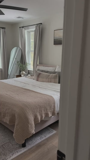 Our Muslin Blanket is made from 100% natural muslin cotton, woven with an open, breathable structure that feels soft, luxurious, and relaxed. This time-tested fabric allows continuous airflow, helping regulate temperature naturally for comfort use throughout the year.